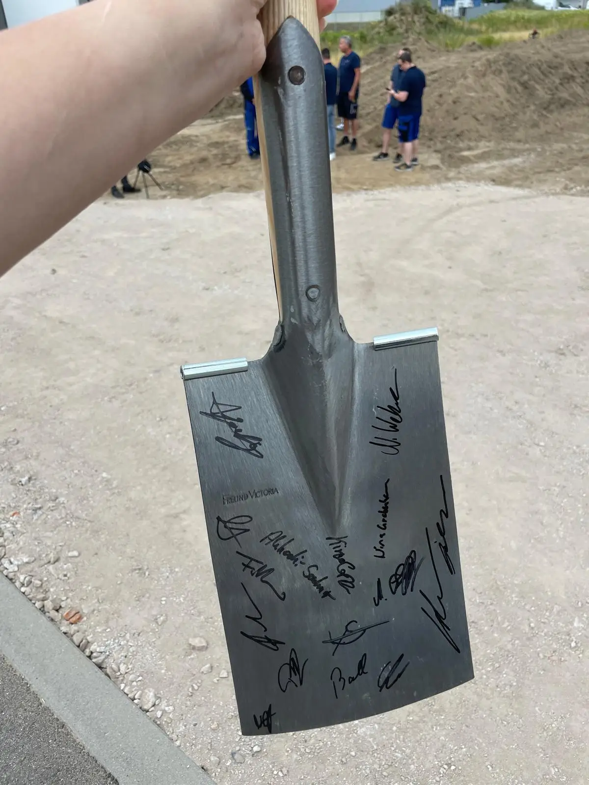 Am 14. Juli 2025 war es so weit: Mit einem symbolischen Spatenstich begann offiziell der Bau unserer neuen Halle in Rheinstetten. Mit dabei – ein signierter Spaten aller Teammitglieder. In den kommenden Monaten entsteht hier unser neuer Standort mit mehr Platz für Lager, Ausstellung und moderne Arbeitsplätze. Wir freuen uns auf die nächste Etappe unserer Entwicklung!