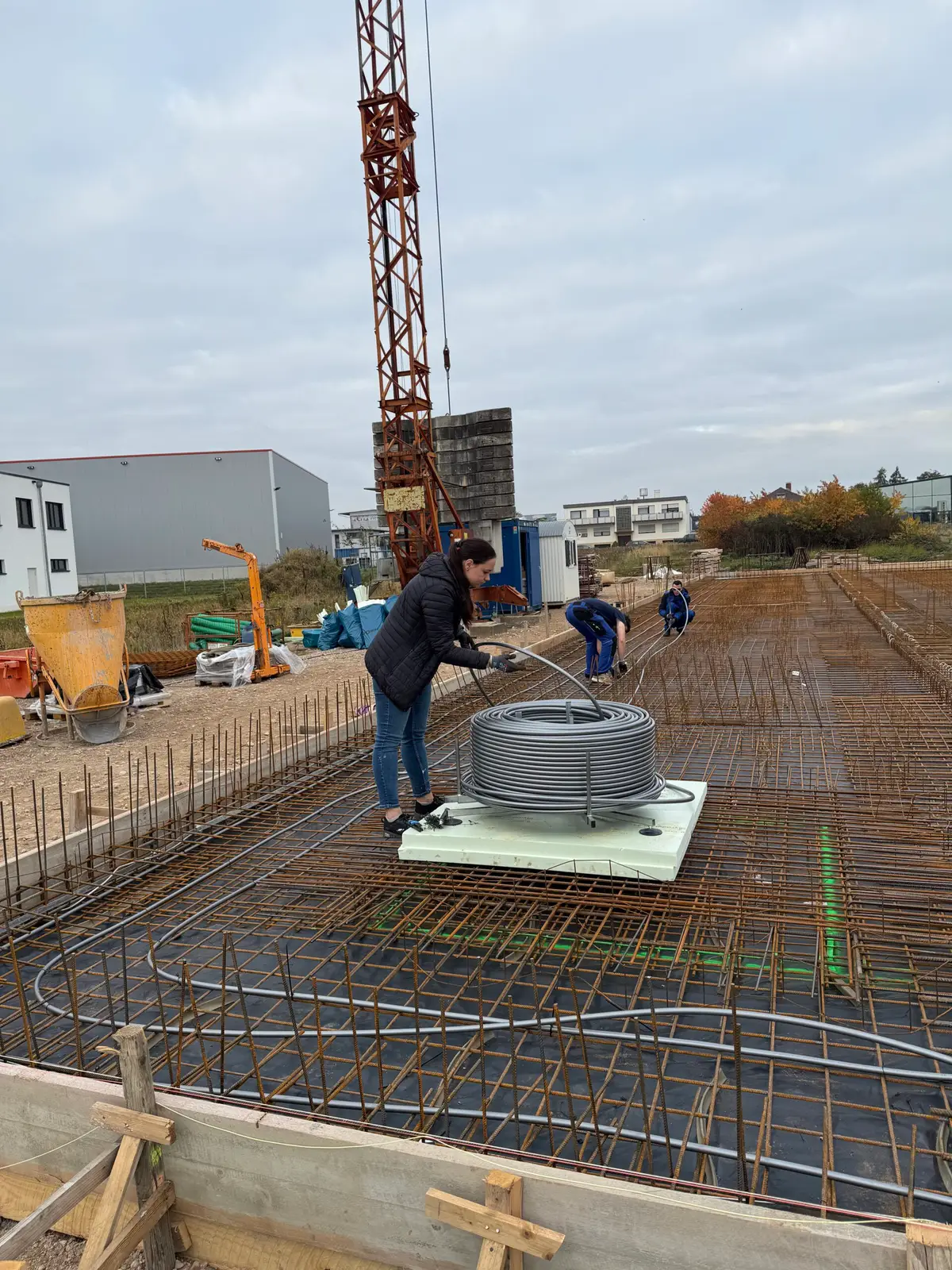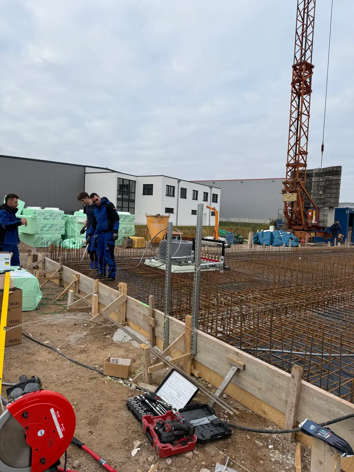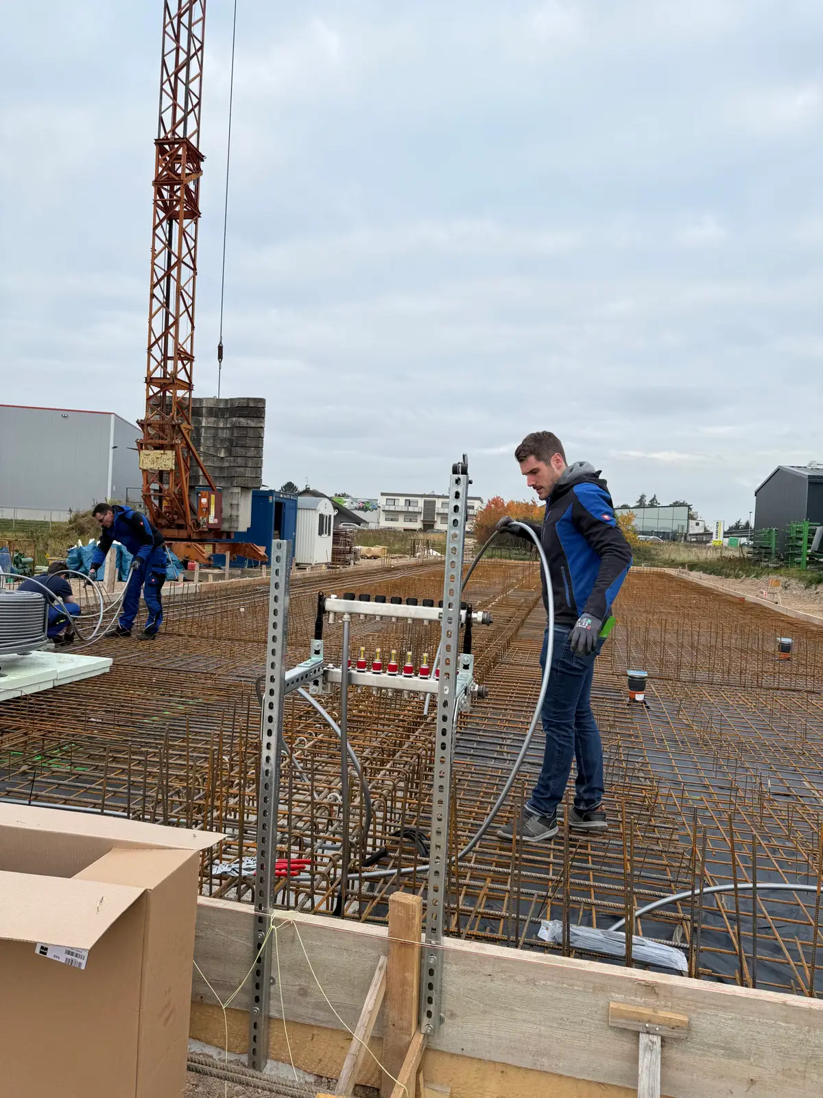 Am 17. Oktober folgte der nächste Meilenstein: die Verlegung der Betonkernaktivierung – in kompletter Eigenleistung. Sie wird später für ein angenehmes Hallenklima sorgen und zugleich die Energieeffizienz des gesamten Gebäudes deutlich steigern.